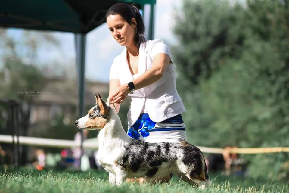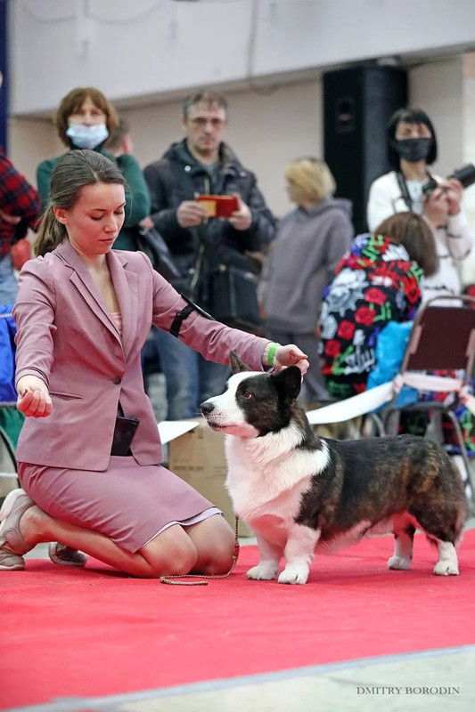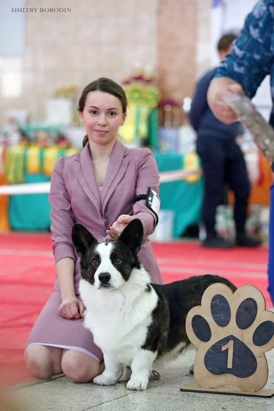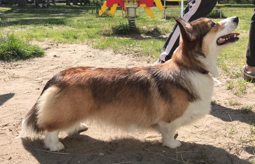 FAVORIT SIBIRI EFFEKTNAYA BARYSHNYA д.р. 03.05.2017, brindle - white, ZACHAROVANNYI PRINTS IZ ASTROGRADA x CORGI ON THE VOLGA LADY WITH A DOG, зав. Bobrova Yu, вл. Tsyva O. S, г. Новосибирск фото с монопородной выставки вельш корги кардиган. Оценка наша оч. хорошо.